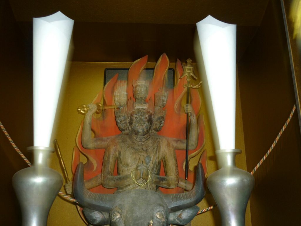 明王堂と言うお堂には、牛にまたがっている【大威徳明王像】を奉祠しています。